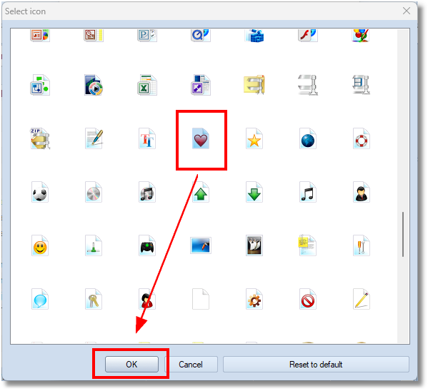 4. To reset the icon to the default one, click the Icon again, then click Reset to default.