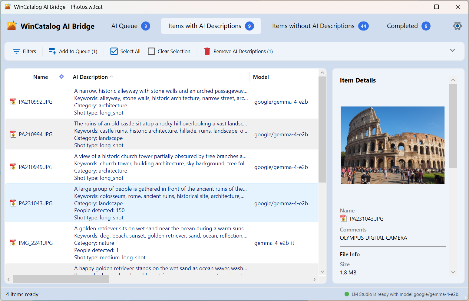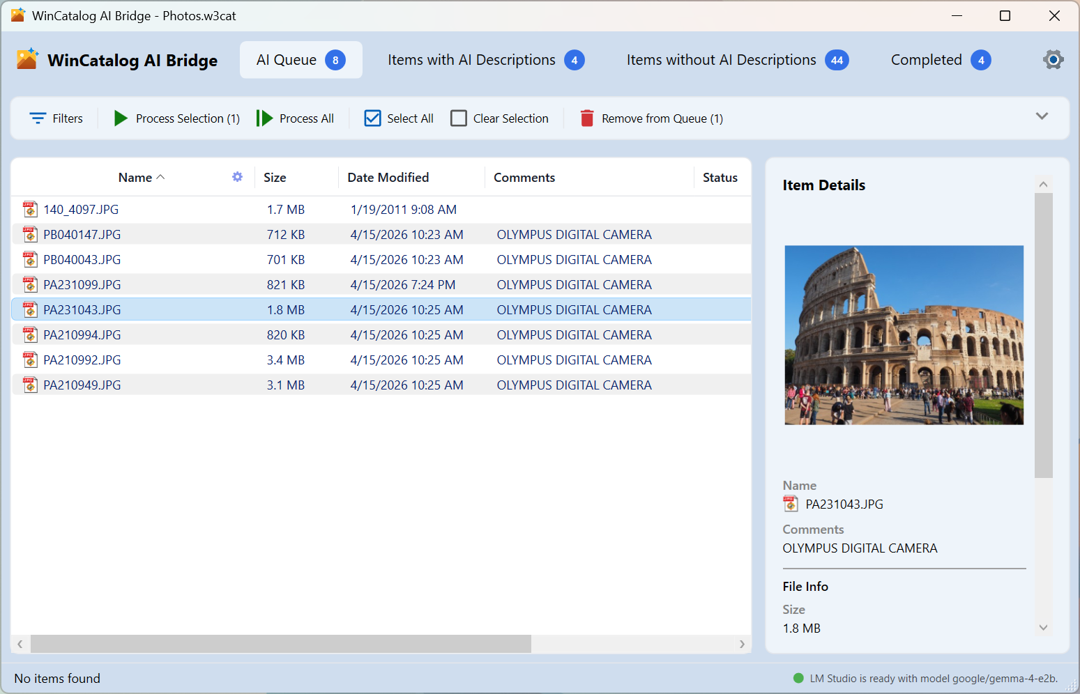 This tab shows all catalog files that have thumbnails but no AI-generated descriptions yet. This is where you start when processing a catalog for the first time.