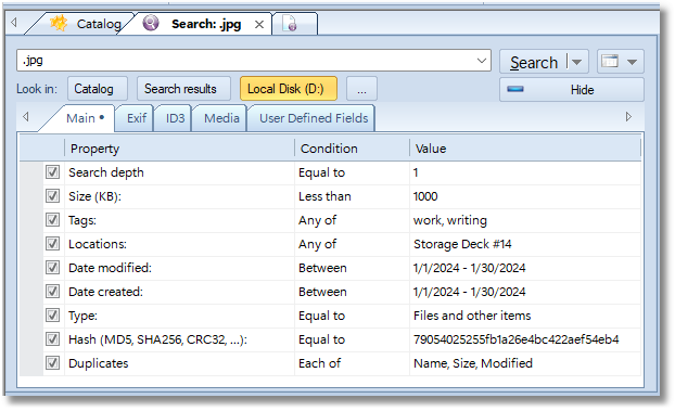 Disks and root folders - the search results should contain only drive records or top-level (root) folders added via the Add Folder command.