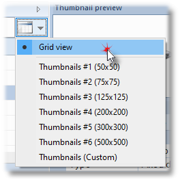 Thumbnails (Custom): displays thumbnails with the maximum Width and Height defined by user. Clicking the Thumbnails (Custom) menu item displays the selector of the desired thumbnails size to display: