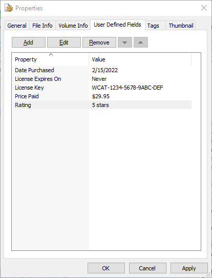 The functionality of the User-Defined Fields extends WinCatalog and allows adding any number of text columns to any entry (and even show these columns in the grid view).
